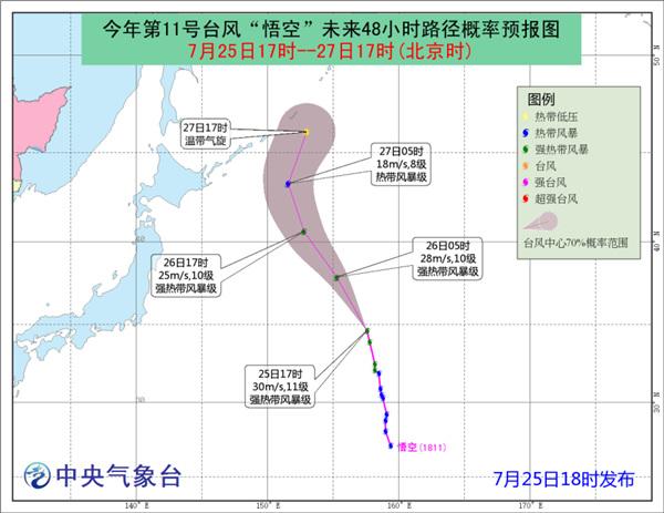 头条 > 温州 > 温州台风网 > 第11号台风悟空路径向北移动 对我国没有影响 时间:2018-07-25 19:00来源:台风网 第11号台风悟空路径:今年第11号台风悟空今天下午5点,风力11级,风速30米/秒,由于台风悟空生成的纬度偏北,路径将向北移动,未来对我国没有影响。 第11号台风悟空路径图 台风网预计,台风悟空将以每小时35公里左右的速度向北偏西方向移动,强度逐渐减弱。 本文“”来源:http://www.lkttc.com/wenzhou/taifeng/70872.html,转载必须保留网址。 (yujeu)