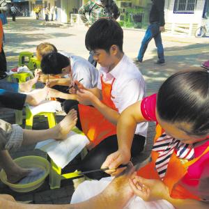 从那以后,丫丫服务义工队的工作,就锁定在为老人剪脚趾甲上。