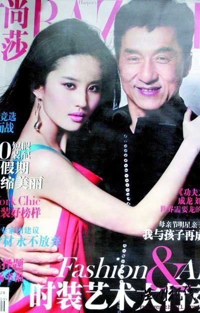 日前,成龙为刘亦菲破例拍摄封面照片 ,有网友声称刘亦菲与成龙拍照穿着出位、动作亲昵,大有借成龙炒作上位的嫌疑。