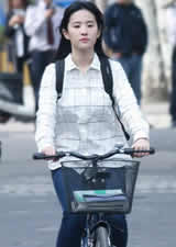刘亦菲致青春2:2015年04月17日,刘亦菲在上海交通大学拍电影《致青春2》,刘亦菲清纯学生装照片曝光,刘亦菲电影《原来你还在这里》开拍啦,女神在交大骑自行车的照片看起来很清纯。