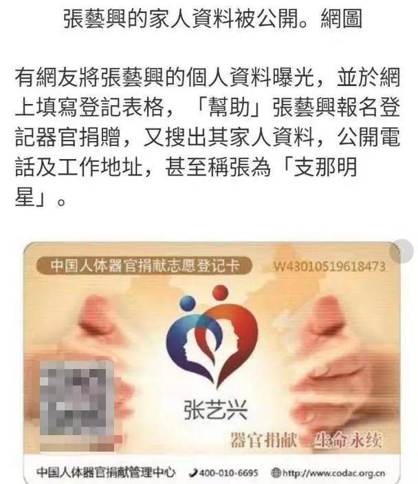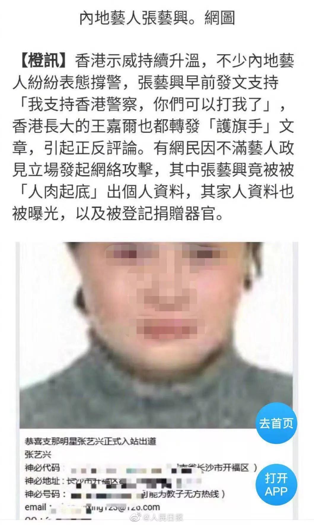 据人民日报微博消息,张艺兴此举却遭到乱港分子攻击,更有甚者在社交平台发布其家人全部私人信息,并利用张艺兴本人身份证申请器官捐赠。