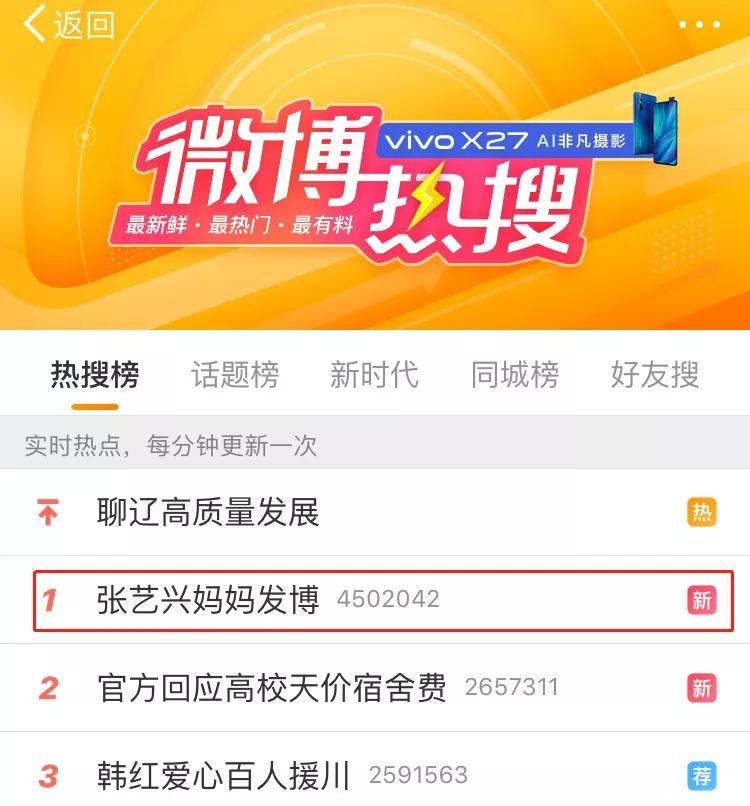 8月27日晚,“张艺兴妈妈发博”的消息登上微博热搜第一位。↓