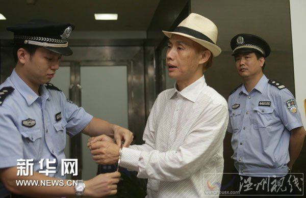 10月15日,邓建国被捕 在广州白云机场被广州市中级人民法院的办案人员带走。新华社发