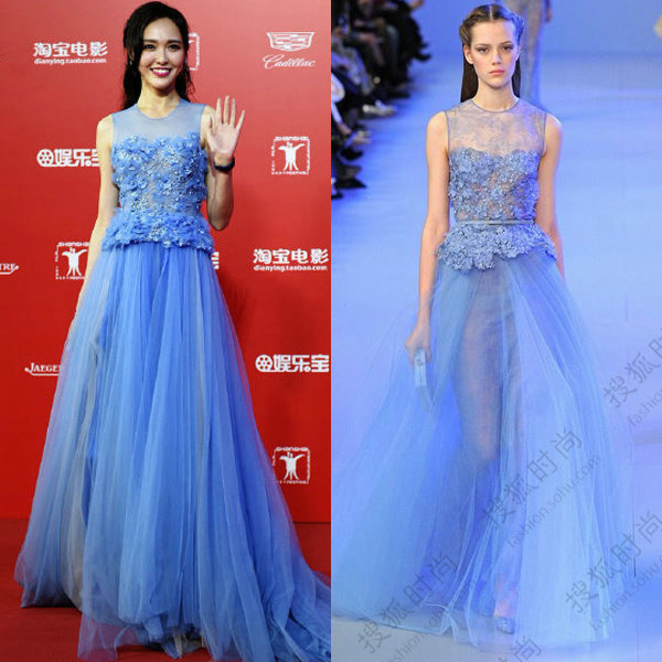 第18届上海电影节开幕红毯上,唐嫣身着一件蓝色的礼服,著名造型师@MixWei称:“唐嫣穿了件假的Elie Saab就出来了。不过这事不怪她,是被造型师坑了!”